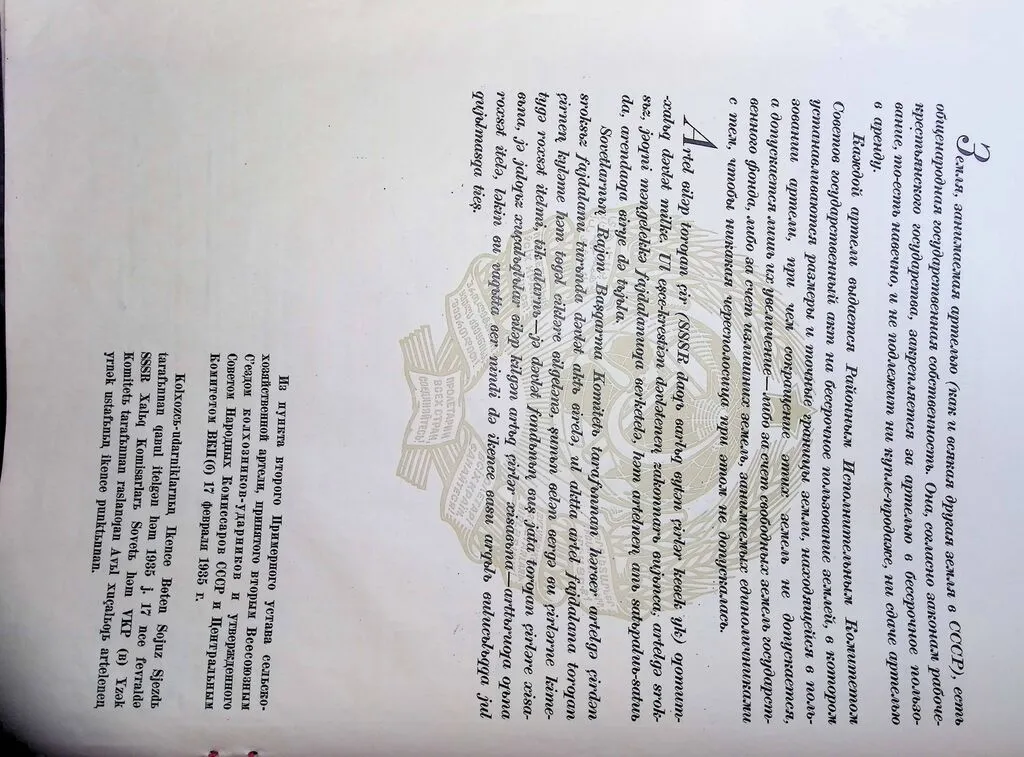 - Колхозам, находящимся в городской черте, акты выдавались райисполкомами, а при их отсутствии — горисполкомами. Усадебные участки колхозников, расположенные в селитебной части города, за сельскохозяйственными артелями по государственным актам не закреплялись.