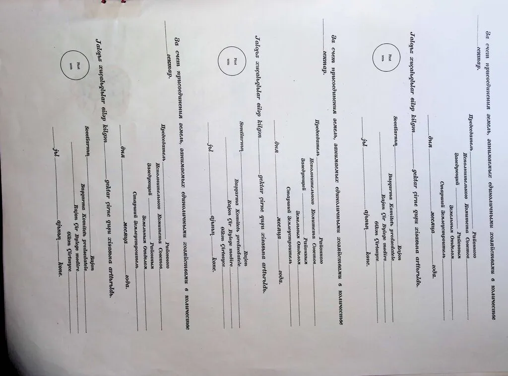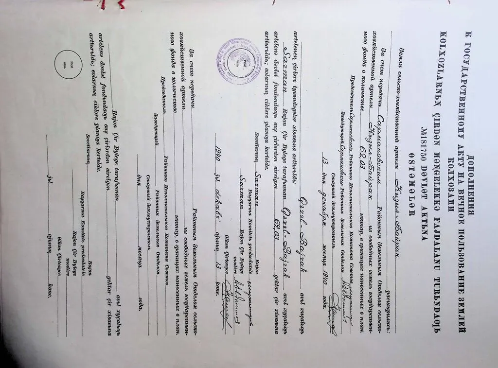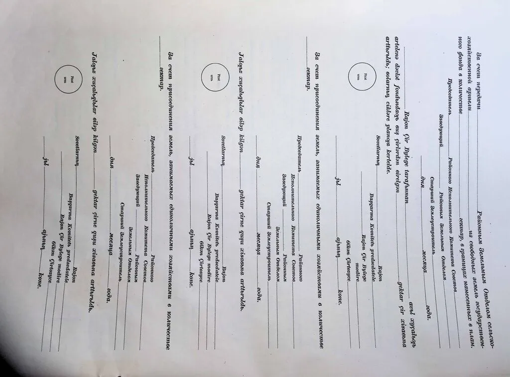 - Акт составлялся в двух экземплярах: один выдавался правлению колхоза, другой хранился в исполкоме районного Совета депутатов трудящихся, где велась специальная книга записей государственных актов.